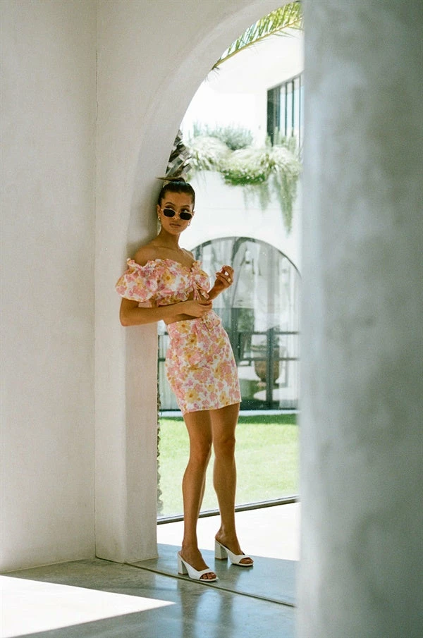 The swoonworthy Cambri Skirt is made from a natural cotton cheesecloth fabric with our exclusive Retro Smudge print. It is a high waisted style featuring a matching belt and covered button detailing down sides. Pair with the Cambri Top and heels for a girls night! Designed exclusively by Sabo.