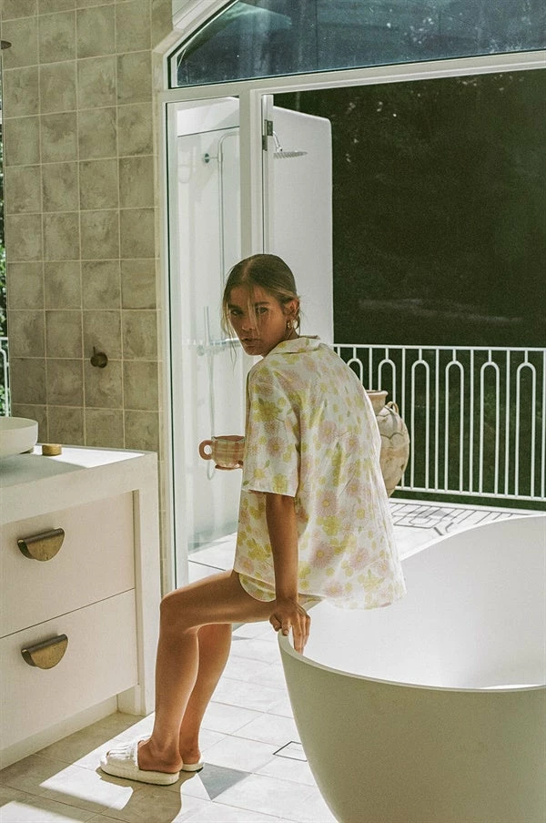 The perfect gift for a loved one or for yourself! The Siesta PJ Set is made from the comfiest high quality natural cotton fabric with our exclusive floral print. It is a button up top with short sleeves and matching shorts. The perfect Netflix and chill uniform! Exclusively designed by Sabo.